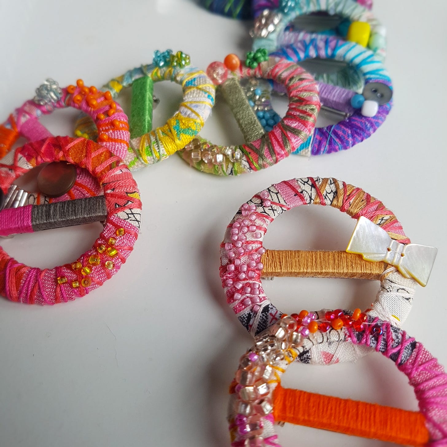 They’re a follow up to some I made by binding belt buckles a couple of years ago. Working with your hands is a proven way to lower stress levels. The whole process of making these brooches feels calming, almost like a meditation - the colourful results are much more energising, like sugary sweets coated with a sprinkling of hundreds and thousands. Styling them for photos will be fun!