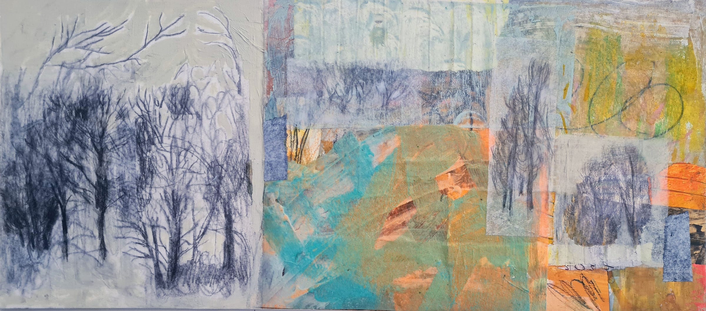 Before that though, I need to actually make the work, so I’ve renewed my commitment to making art, if possible, every day. I already have a few collage pieces in various states of completion. I’m enjoying working on a few at a time and building them up from painted papers. This seems to suit the way my mind works best. The one at the top of the page is almost finished - the trees probably need a bit more definition, but I like the colours, the somewhat chaotic mix of textures, and the controlled versus loose lines.