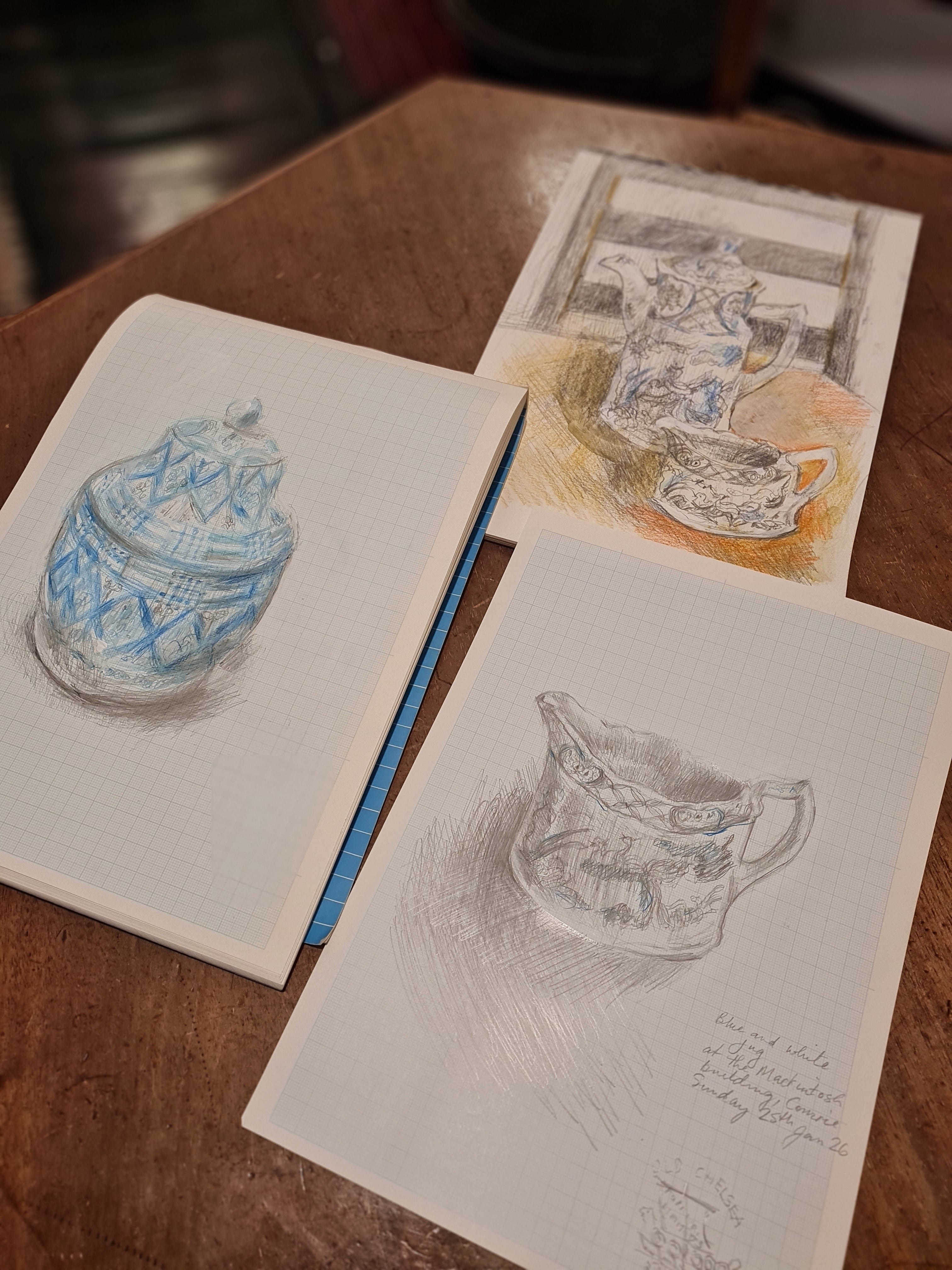 Robb tolerates bad weather better than me, so he went for a cycle on Sunday afternoon while the rain was tipping down. Meanwhile, I amused myself drawing the crockery in the flat. I think this email will probably be clipped because I added too many photos, but if you click through on any of the images, or the heading you should be able to see everything on Substack.