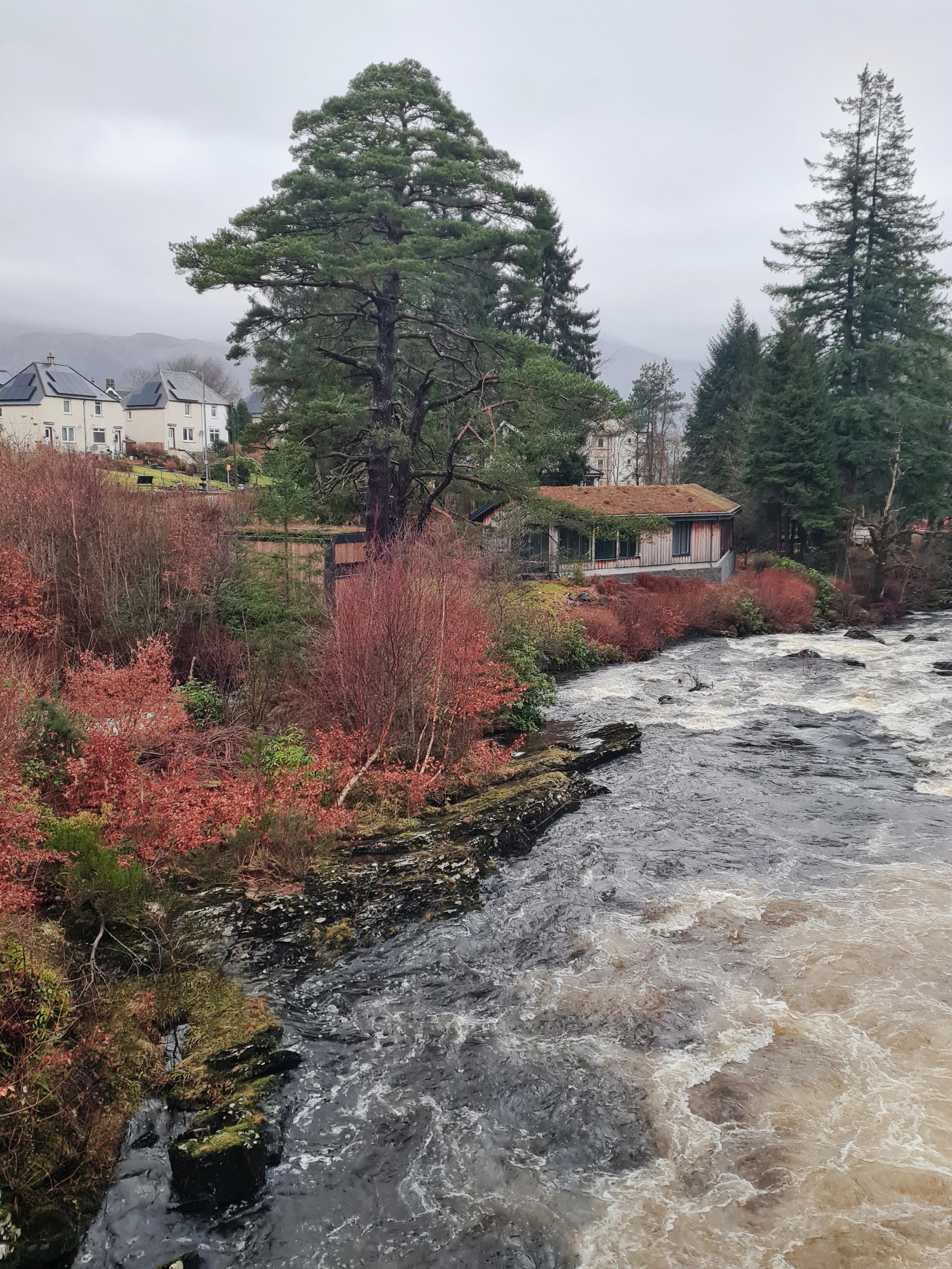 We chose the worst weekend for weather. It was truly dismal! We made sure to visit all of Comrie’s galleries, cafes, and the charity shop, but spent most of our time either driving around looking at beautiful, if water-drenched scenery, or comfortably warm and dry indoors.
